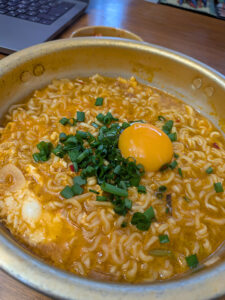 起きてからヘジャン辛ラーメンでお腹を整える。ストックしてた辛ラーメンは心細かったので先日買ってきておいて正解。