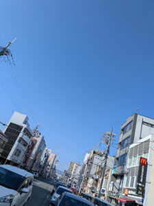 早朝に比べればまだマシだけど、冬に30分くらいキックボードに乗るのはなかなかの寒さ。防寒にマフラーと手袋は必須だ。