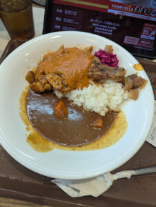カレールーとバターチキンのソースの味の分離が半端なく、何か想像してたのと全然違ってものすごく残念な気持ちになった…TT