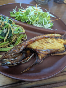 昼メシは八戸で買ってきたサバの干物が冷凍庫にあったので焼いたんだけど、マジで脂のノリが半端ない。そしてサイズ感。笑