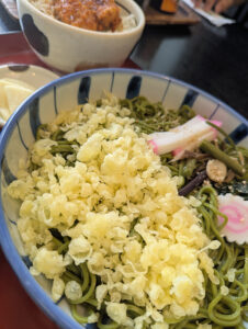 駒ヶ根といえばソースカツ丼が有名で、この店のソースカツ丼も美味しいとのことだったので、欲張って冷やしたぬきそばとミニソースカツ丼のセットで注文。