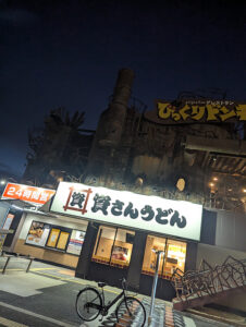 結局その後の休みも特に取らず、一気に走り抜けて寝屋川辺りで高速を降り、24時間やってる”資さんうどん”がゴール。