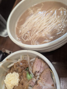 ドロドロの豚骨ラーメンで、具が別で提供されるんだけど、麺だけの状態で九割くらい食べてしまうのが俺流。そもそもスープと麺の状態が美味しい。
