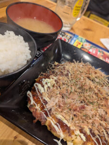 リハ後は事務作業を少しやってからサッと昼飯を食べに堺東の街でいつものお好み焼き定食で済ませる。