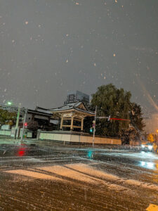 札幌駅から宿のある豊水すすきの駅までは地下鉄で移動。そして地上に上がったところで雪がちらつき始めていた。