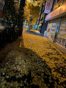 冬到来!イチョウの葉の黄色いじゅうたんが綺麗だった夜