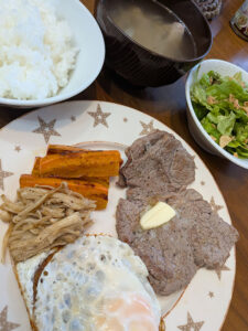 ステーキなんてどうやって焼くかとかあんまりわかってないんだけど、なんとなくでやったらやっぱり硬かった・・・笑