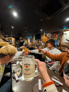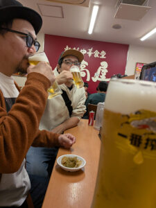 顔合わせから開演まで少し時間があったので、メンバーを誘ってDARUDEMATIAN恒例になった激安ケバブからの日高屋呑みへ。ケンボーは昼にCANTOYで池袋の年末現場があったみたいで後から合流だったので3人で乾杯。