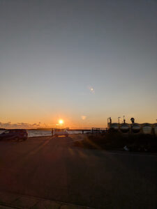 頑張ったご褒美は初日の出ならぬ初日の入り。この港から見るサンセットが最強のマジックアワー。