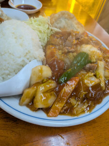 みんなのレビューを読んでたらどうやら”ガチ盛り”のお店っぽくて、ちょうどお腹も空いてたし満たせてもらおうと、看板メニューっぽい中華ランチを注文。