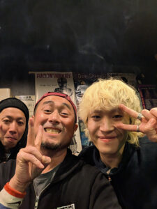 Dilongのボーカルのユウトとたーまの3人で色々話をしてたけど、この組み合わせも面白かったな。世代を越えたヴォーカル達がそれぞれの悩み事も持ってるし、自信も持ってる。そんな人らのエピソードを聞いてたら一晩中呑んでられるわ俺。