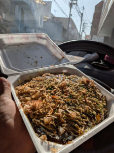 入り前の昼にスタジオだったので腹ごしらえに近所にあったじゃんぼ総本店でお好み焼きをテイクアウト。
