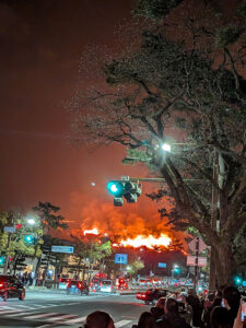 18時すぎには花火も上がって、しばらくしたら道の奥の方の山から火の手が上がり、みるみる間に燃え広がっていった。