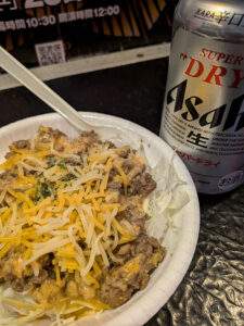 海太は唐揚げを提供してて、マモはケバブ丼で、その両方をセットにしたメニューがあったので迷わずそれをいただく。二人とも酒と料理好きのドラマーってだけあって、ちゃんとこだわった感じが伝わってくる料理でメチャうま。
