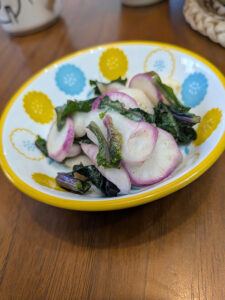 そう言えば先日大阪の墓参りの時に、母に進められて買ってきた”日野菜”というカブの仲間を漬物にしてみた。