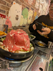 とりあえず思い出回収しながらとチョイスした韓国料理はムルカルビ(水カルビ)という料理。パット見のビジュ的にはすき焼きみたいな感じだけど、いつも通りの赤いスープに野菜やら何やらが入った鍋。下の方に骨付きカルビが気持ち入ってた。