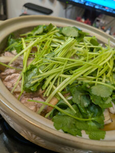 その代わりになるもの…と思いついた三つ葉を買って晩飯はせり鍋ならぬ三つ葉鍋をやってみた。